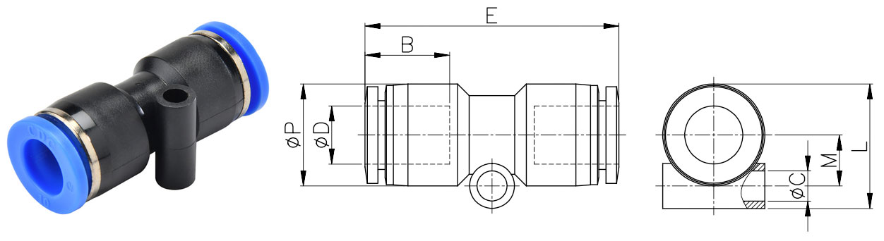 Thiết kế One-touch: Cho phép tháo lắp ống hơi nhanh chóng mà không cần dụng cụ hỗ trợ.