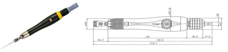 ● Thiết bị này có trọng lượng nhẹ (180g), bọc cao su chống mỏi, hoạt động bằng áp suất khí nén 0.6MPa, là dụng cụ không thể thiếu trong ngành gia công cơ khí chính xác và sản xuất khuôn mẫu.